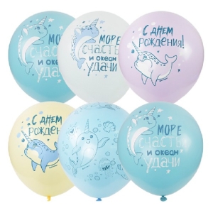 Шар надувной С Днем Рождения Морской Единорог пастель+декор M12/30 см ассорти 4690296069667