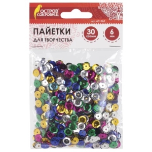 Пайетки ОСТРОВ СОКРОВИЩ имеют широкий спектр использования. С их помощью можно украшать предметы одежды и интерьера, создавать простые аппликации и великолепные картины.