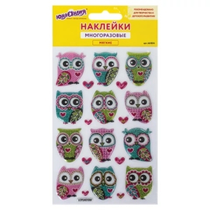 Наклейки зефирные Совы многоразовые с блестками 10х15 см