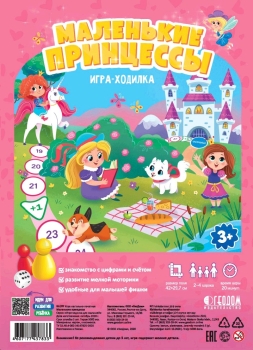 Что может быть интересней, чем игры с друзьями? Перед Вами - увлекательная настольная игра с невероятными приключениями Принцесс в волшебном мире для весёлого времяпровождения! Игра адаптирована для самых маленьких игроков в возрасте от 3-х лет, предназначена для компании от 2-4 участников. С помощью игры-ходилки ребенок быстро освоит счет и внимательность. Милые красочные иллюстрации сказочного мира привлекают внимание и приводят в восторг и детей, и взрослых.