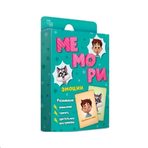 "Мемори" — весёлый и интересный способ тренировать память и внимание.Яркие красочные герои Енот и Мальчик познакомят малыша с миром эмоций, которые люди испытывают каждый день. Игра формирует эмоциональное восприятие ребенка, умение осознавать эмоции, управлять ими, а также развивает память, внимание, логику и мелкую моторику. Эта настольная игра состоит из 30 карточек и вкладыша с парвилами игры. Комплектация - 30 карточек. 8х12 см.