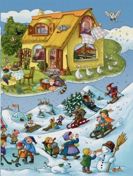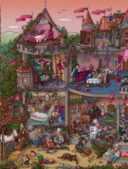 Рассматривай картинки с замками и принцессами, волшебниками и единорогами, гномами и великанами, пересказывай любимые сказки и придумывай свои истории!