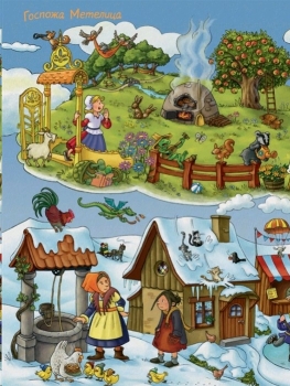 В этой книге на каждом развороте в картинках рассказывается одна из сказок братьев Гримм: