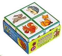 Набор состоит из 4 кубиков размером 4х4 см. Ребёнку нужно сложить картинку из 4 фрагментов. В качестве подсказки даны 6 картинок с изображением животных. Картинка кладётся на дно коробочки, и ребёнок ставит на неё нужные кубики. Во время игры происходит знакомство с понятиями "часть и целое", развивается умение работать по образцу. Наклейки на кубики сделаны из качественной гладкой бумаги, которая не портится от игры.