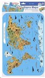 Двухсторонняя карта мира «Животные. Достопримечательности» – это магнитная развивающая игра, которая познакомит ребёнка не только с континентами и странами, но также с их обитателями и важнейшими природными или историческими достопримечательностями планеты.