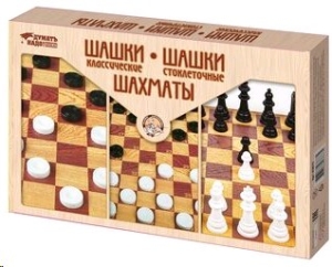 Помимо классических шахмат, игровое поле также позволяет играть в самые различные варианты шашек: русские, итальянские, бразильские шашки, поддавки, чекерс, пул, а также в международные шашки (стоклеточные). Описание правил к данным видам игр читайте на обратной стороне коробки.