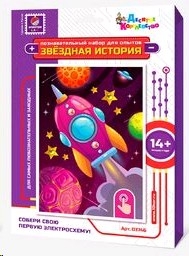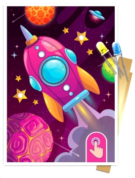 Создайте яркую открытку со светящимися лампочками своими руками с помощью познавательного набора для опытов и творчества «Звёздная история. Ракета»!