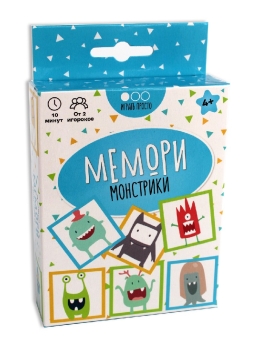 Мемори – полезная игра для всех, даже для взрослых! Развивайте память, зрительное восприятие, внимание вместе с забавными монстриками! Классическая обучающая игра с простыми правилами. Как играть: Карточки раскладываются на столе в случайном порядке лицом вниз. Первый игрок открывает две карточки. Если изображения на них одинаковые, он забирает их себе, и открывает следующие две. Если изображения не совпали, карточки возвращаются на место лицом вниз, а ход переходит к следующему игроку. Победителем становится игрок, у которого больше всех карточек монстриков.