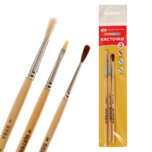 Набор кистей Цветик № 7 (3 шт): щетина плоская № 4, коза круглая №4, пони круглая № 3