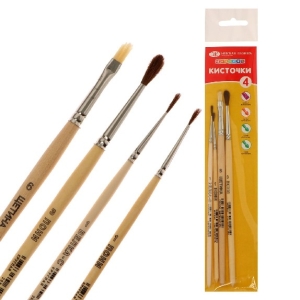 Набор кистей Цветик № 9 (4 шт): щетина плоская № 6, белка круглая № 1, пони круглая № 1, № 3