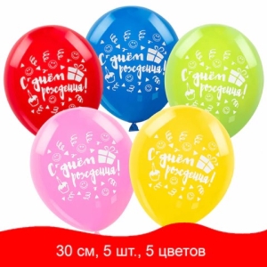 Шар воздушный комплект 5шт 30 см ассорти 5 цв С Днем Рождения