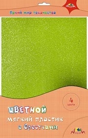 Пластик цветной мягкий с блестками А4 4 цв ПЭТ