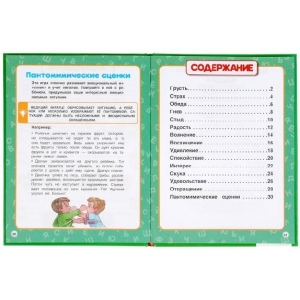 - в содержании: эмоции - грусть, страх, обида, гнев, стыд, радость, волнение, восхищение, удивление, спокойствие, интерес, скука, удовольствие, отвращение; пантомические сценки