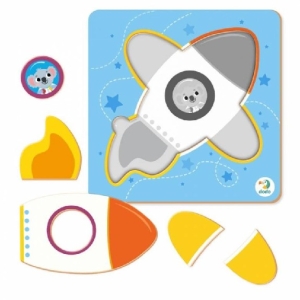 Прилетела быстрая ракета! Ее составные части - это геометрические фигуры, разных цветов и форм. Нужно собрать готовую картинку и запомнить названия всех элементов.