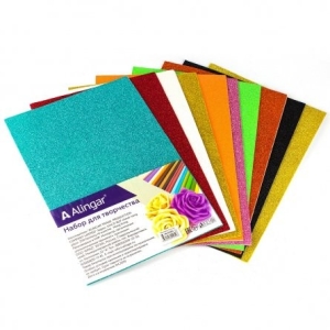 Фоамиран А4 2 мм 10 цв самоклеющийся глитер ассорти