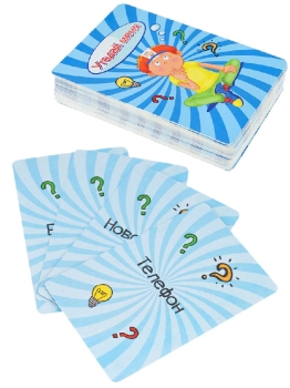 Все игроки одновременно берут по карточке и прикладывают к своему лбу так, чтобы не видеть, что на ней написано. Задача игрока - догадаться быстрее остальных, какая карточка ему досталась. Для этого участники по очереди задают вопросы, на которые можно ответить только "да" или "нет". Угадавший своего персонажа игрок забирает карточку себе, после чего берёт из колоды новую карточку и прикладывает ко лбу. Кто соберёт больше угаданных карточек, тот побеждает в игре. Материал: картон. Состав игры: 55 карточек. Возраст: 6+