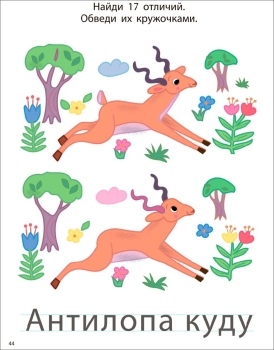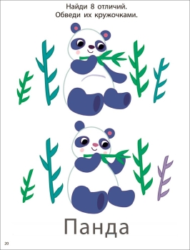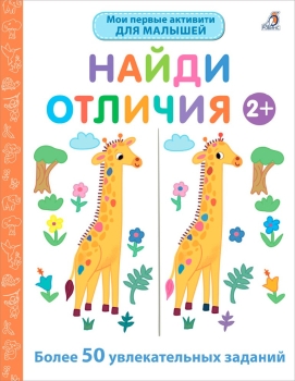 Эта яркая книга специально создана для самых маленьких любителей искать отличия между картинками. В ней собрано много увлекательных заданий для малышей с 2х лет, в которых нужно найти и посчитать отличия между изображениями. Разгадай все отличия, найди и покажи животных, названия которых есть в книге! Начинай обязательно с первого задания, ведь они становятся всё сложнее и сложнее с каждой страницей – от 3 отличий между картинками до 20. Важно знать родителям: Занятия по книге способствуют развитию внимания, логики, усидчивости, мелкой моторики, речи, памяти, пространственного мышления, зрительного восприятия, тренировке навыков письма, способствуют развитию словарного запаса. Рекомендовано для детей от 2 лет.