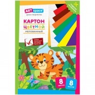 Набор цв картона A4 8л 8 цв Тигренок мелованный в папке