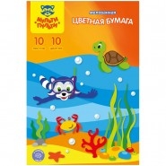 Набор цв бумаги мелованной A4 10л 10 цв в папке Приключения Енота