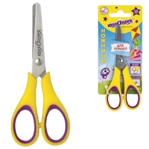 Ножницы 125 мм для левши Воздушный змей резиновые вставки желто-фиолетовые