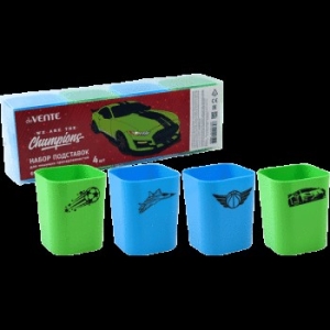 Набор подставок для пишущих принадлежностей Champions 4 пластиковых подставки 6,9x6,9x8,9 см c цветным рисунком в пластиковой подарочной коробке