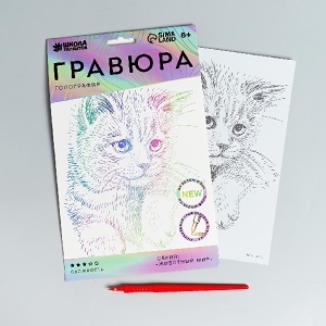 Гравюра Пушистый котенок с металлическим голографическим эффектом