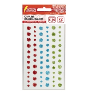 Стразы самоклеящиеся Круглые 5-10 мм 72 штуки блестящие на подложке