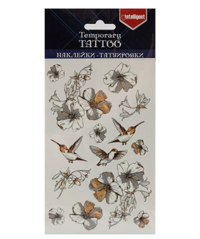 Наклейки тату Колибри и цветы 10х21 см на листе