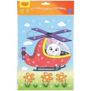 Аппликация из пуговиц Зайка в вертолете 21*29,5 см с раскраской