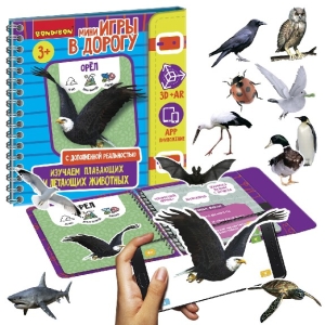 Развивающая игра «ИЗУЧАЕМ ПЛАВАЮЩИХ И ЛЕТАЮЩИХ ЖИВОТНЫХ» из серии «Мини-игры в дорогу» это набор обучающих интерактивных карточек с использованием технологий 3D и AR (дополненной реальности).