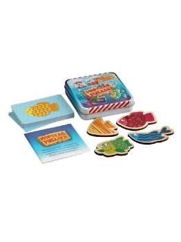 Хочешь почувствовать себя настоящим рыбаком? Настольная игра "Морская рыбалка" поможет тебе в этом!Состав: карточки - 32 шт. (56 х 87 мм); фигурки рыбок из фанеры - 4 шт. (в длину до 63 мм, в ширину до 50 мм); инструкция. Игра для детей от 6 лет, число игроков от 2 до 4. Как играть? Разложите на столе деревянных рыбок и колоду карт рубашкой вверх. Игра начинается сразу после того, как после жеребьёвки один из игроков переворачивает верхнюю карту из колоды. Цель игры - первым схватить рыбку, изображённую на карте или первым выкрикнуть характеристику выпавшей рыбки. Тот, кто справился с заданием, тот сумел поймать рыбку и забирает карточку себе. Задачу усложняет то, что во время морской рыбалки игрокам будет сложно разглядеть, какая именно рыбка скрывается в глубине моря. Важно не перепутать форму, цвет или рисунок чешуи рыбки. Если такое произошло, карточка может достаться тому игроку, кто назовёт пойманную рыбку правильно.