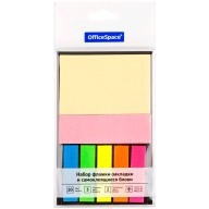 Флажки-закладки и самоклеящиеся блоки в наборе 48*12 мм* 5 цв 75*51 мм*1 цв 75*25 мм *1 цв по 20л неоновые цвета флажков