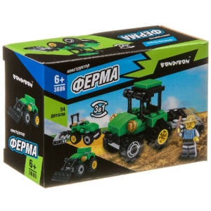 Конструктор - не только одна из самых развивающих детских игрушек, но и прекрасный подарок к любому случаю! Конструктор от Bondibon Ферма порадует разнообразием моделей, а также тем фактом, что из деталей одного набора можно создать сразу несколько видов транспорта! О том, как это сделать, рассказано в прилагаемой инструкции. Детали всех наборов Bondibon Ферма совместимы с деталями конструкторов мировых производителей. Данный набор дает возможность создать 3 модели трактора. В наборе 54 детали.