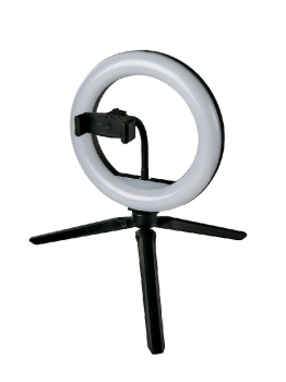 • кольцевая светодиодная лампа с регулируемым освещением на штативе-треноге (с держателем для телефона) – 1 шт. (диаметр – 20 см)