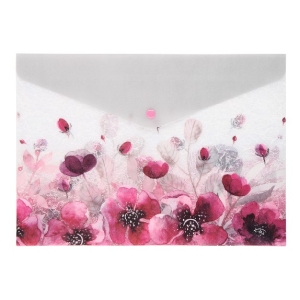 Папка-конверт на кнопке А4 Flowers 0,18 мм матовая полупрозрачная с рисунком