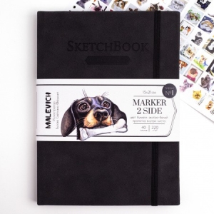 Скетчбук для маркеров 15х21 см 40л мокрый асфальт двусторонняя бумага 220 г/м