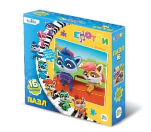Пазл 16 элементов, основанный на любимых сюжетах мультфильма Енотки понравится любому ребенку, а сборка яркой картинки принесет радость не только малышам, но и их родителям. Соберите всю коллекцию новых пазлов!