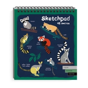 Скетчпад 168х195 мм 48л чёрная, серая, зелёная бумага 120 г/м2 Зверята гребень