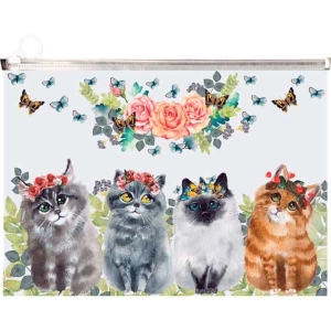 Папка на молнии А4 Котики 180мкм матовая полупрозрачная с рисунком
