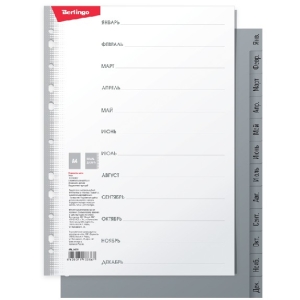 Разделитель листов А4 12 листов Январь-Декабрь серый пластиковый