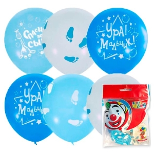 Шар воздушный набор 5шт М12/30 см К рождению мальчика пастель+декор ассорти