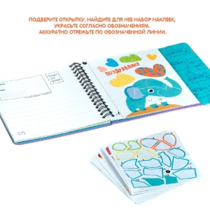 Подберите открытку, найдите для нее набор наклеек, украсьте согласно обозначениям. Аккуратно отрежьте по обозначенной линии.