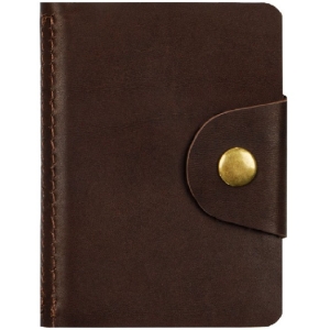 Визитница карманная на кнопке 10*7 см 18 карм натуральная кожа темно-коричневый