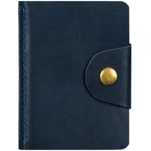 Визитница карманная на кнопке 10*7 см 18 карм натуральная кожа темно-синий