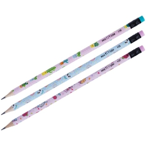 Карандаш ч/г Mood Pink HB с печатью с ластиком ассорти