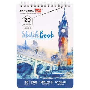 Скетчбук BRAUBERG ART "CLASSIC" для эскизов и графики. Внутренний блок - бумага белого цвета с гладкой фактурой. Подходит для работы с широким спектром графических материалов (уголь, соусы, карандаши и прочие).