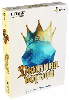 «Дюжина короля» – это тактическая настольная игра, в которой вам предстоит предугадывать действия соперников в борьбе за наибольшее значение вашего кубика. Каждый ход игроки разыгрывают 1 из своих карт, меняющих значение кубиков игроков на столе. Для победы в игре необходимо стать победителем в 2 раундах.