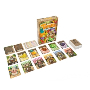 Тануки. Охота на фрукты — это яркая настольная игра, в которой игроки будут собирать наборы сочных фруктов, тщательно выбирая момент для взятия карт. Тануки — маленькие озорники, которые живут в лесу на окраине небольшой деревни. Они очень любят сочные фрукты и частенько наведываются в магазинчик бабули Гренни. Стоит ей на минутку отвлечься, как эти шутники уже тащат с прилавков фрукты. Пока Тако Воришка, главарь лесных разбойников, загружает добычу на тележки, остальные тануки выжидают момент, чтобы схватить одну из них и вернуться с ней домой. Один из игроков становится главарем и раскладывает карты фруктов по тележкам. Остальные игроки действуют одновременно. Они оценивают состав фруктов на тележках и как только замечают тележку с хорошим набором фруктов, то стараются схватить её, опередив соперников. Когда каждый игрок схватил по тележке наступает черёд раскладки фруктов по столам. У каждого игрока 5 столов и на каждом столе может находиться только один вид фруктов. Повторяем действия, пока из колоды карт фруктов не появится карта бабули Гренни. Она прогоняет Тануки из магазинчика, а для игроков это означает конец игры. Все игроки раскладывают последнюю добычу по своим столам и подсчитывают победные очки. Базово игроки подсчитываеют количество карт фруктов на столе и умножают на числовой номер этого стола (от 1 до 5). Однако, карты фруктов обладают дополнительными эффектами, которые могут влиять на сумму победных очков. Мало стащить нужную тележку, нужно так же правильно распределить фрукты на своих столах. Дополнительные плюсы В игре предусмотрен соло-режим, а также набор особых тележек с эффектами, которые разнообразят игру. Кому подойдёт эта игра? - Для игры взрослых с детьми и детей в кругу сверстников - Для игры в кругу друзей и коллег. - Для опытных игроков, так как в игре есть что посчитать. - Всем, кто любит фрукты и Японию. Состав игры: - 72 карты фруктов - 25 карт столов - 10 карт простых и особых тележек - карта Тако Воришки - карта бабули Гренни - блокнот для записи победных очков - правила игры