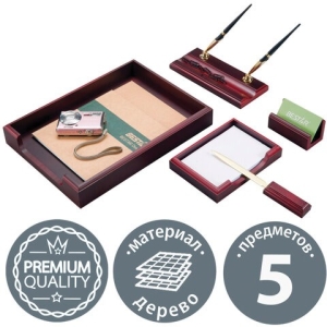 Набор настольный Neptun из дерева 5 предметов цвет красное дерево