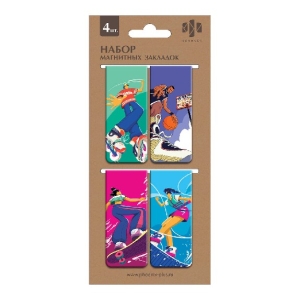 Закладки магнитные 4шт 25х58 мм Спортсмены